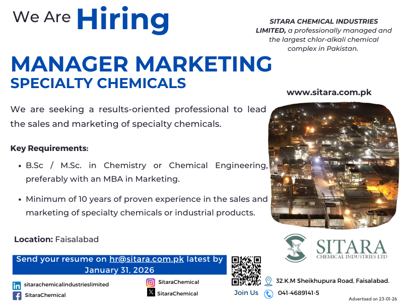 Required Manager Marketing For (Specialty Chemical)